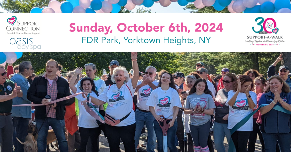 30th Annual Support-A-Walk for Breast Cancer & Ovarian Cancer Sunday, October 6, 2024 FDR Park in Yorktown Heights, NY Oasis Day Spa is proud to be a sponsor for Support Connection's upcoming 30th Annual Support-A-Walk for Breast and Ovarian Cancer! This milestone represents 30 years of people joining together to honor, support, and [...]